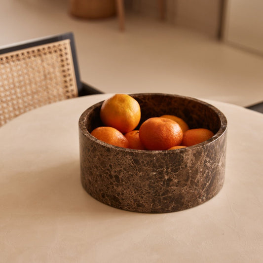 Travertine fruitschaal rond bruin